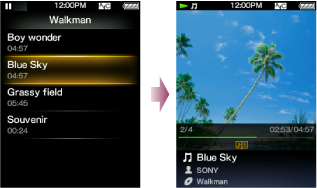 パソコンから転送した楽曲を“ウォークマン”で再生します。