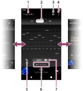 - どの音質設定画面を表示していても、画面を下にスワイプすると再生画面に戻ることができます。