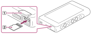 - microSDカード(別売)をウォークマンに挿入する。
