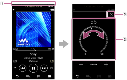 )をタップすると、ボリューム調整画面が表示され、ボリュームノブ(