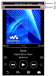 情報表示エリアには、コンテンツの再生状態や電池残量、ボリュームなど各種設定のアイコンを表示しています。再生状態や設定、画面によって表示されるアイコンは異なります。