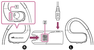 - ウォークマンに対応している別売のACアダプター( AC-UD20 )を使って充電することもできます。