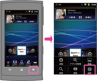 ホーム画面で (メニュー)ボタンをタップし、[設定]をタップします。