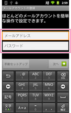 メールを初めて使う場合は、アカウント情報を設定する必要があります。