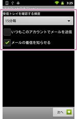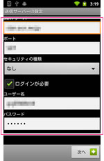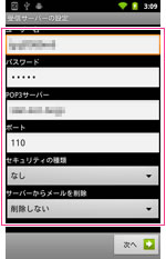 受信サーバーの設定をします。手順2の情報に基づき、情報があらかじめ埋められていますが、必要に応じて修正をします。