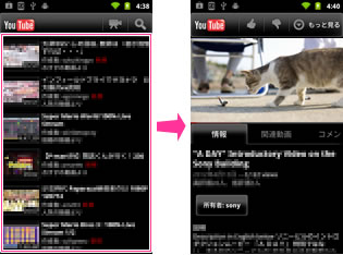 インターネットにアクセスして、YouTubeアプリケーションを使うと動画の閲覧ができます。