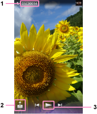 (再生開始): タップすると、スライドショーの再生を開始します。画面をタップすると、再生を停止します。