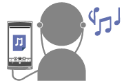 「x-アプリ」から "ウォークマン"へ転送した楽曲を、音楽アプリケーション(W.(ダブルドット)ミュージック)で再生してみましょう。
