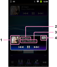 (ダブルドット)ボタンを押すことでW.(ダブルドット)ミュージックアプリケーションを起動することなく、音楽の再生制御ができます。これをW.(ダブルドット)コントロールといいます。