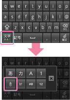 長押し: 文字種およびキーボード切り換えウィンドウを表示します。