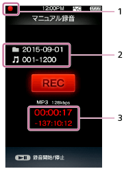 - 録音が始まると、フォルダー名と曲名が自動で表示されます