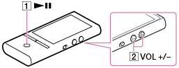 )で録音モニター音の音量調節をします。ただし、ウォークマン側の音量調節をしても録音レベルは変わりません。録音レベルを調節する場合は録音される音の音量を調節してください。 - 録音停止までの間に録音した曲は、ひとつのフォルダーに録音されます。次にシンクロ録音を始めると、新規フォルダーに録音されます。