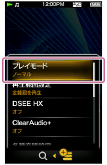)で設定したい項目(例えば[プレイモード])を選び、ボタン(