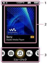 ミュージックウォークマンに転送した曲や録音した曲を再生します。