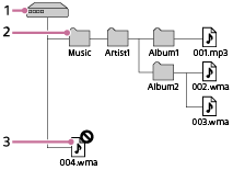 既定のフォルダー名([Music]など)を変更したり、削除したりしないでください。W.ミュージックが曲を認識できなくなります。