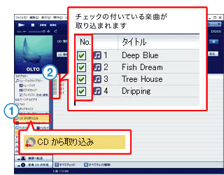 チェックを付けた楽曲は取り込み対象となり、チェックをはずした楽曲は取り込まれません。