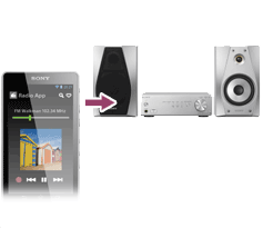 USB DACアンプUDA-1とスピーカーにインターネットラジオやFMラジオを視聴可能なウォークマンをつないで、ウォークマンで受信したラジオ番組を自宅のスピーカーから再生してみましょう。