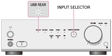 1) USB DAC アンプUDA-1は前面と背面にUSB端子があり、ハイレゾ音源を楽しむには、別売のハイレゾ・オーディオ出力用USB変換ケーブルを使って、背面のUSB端子に接続してください。これにより、曲データがデジタルのままアンプに入力されるため、劣化が少ない状態で音が出力されます。その場合、ウォークマンの音質設定はできません。