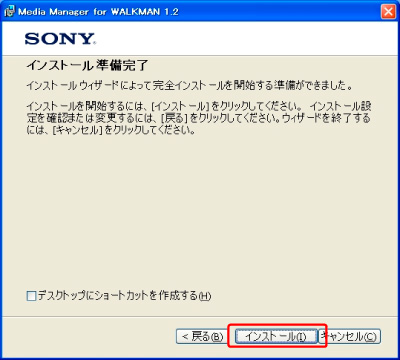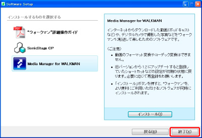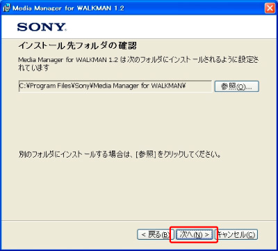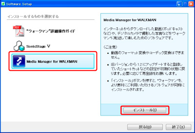 “Media Manager for WALKMANのインストール”画面が表示されます。