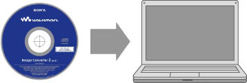 音楽の管理や“ウォークマン”への転送を行うソフト「SonicStage CP」をインストールするには、“ウォークマン”に同梱されているCD-ROMをパソコンに挿入します。