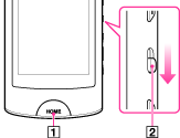 “ウォークマン”のいずれかのボタンを押すと電源が入ります。画面上部に