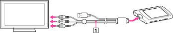 別売りの映像/音声出力ケーブル(WMC-NWV10)を使って、“ウォークマン”とテレビを接続する。