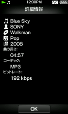 録音した曲の詳細情報画面では、録音日時とファイルサイズが表示されます。