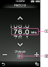 FMラジオ画面で、受信できる放送局の周波数やプリセット番号を選ぶことができます。