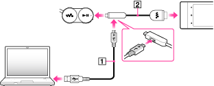 同梱のBluetoothヘッドホンを電源コンセントにつないで充電するときは、AC電源アダプターAC-NWUM60(別売)などをお使いください。詳しくは、AC電源アダプターに同梱の取扱説明書をお読みください。
