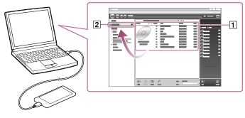 - USBケーブル(同梱)で“ウォークマン”とWindowsパソコンを接続してから、Media Goを起動する。