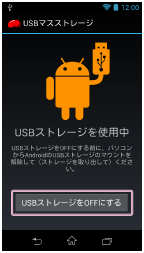 画面に表示されていない場合は、ステータスバーをドラッグして、通知パネルで[USBストレージをOFFにする]をタップしてください。