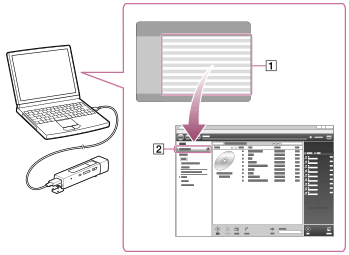 - USBケーブル(同梱)で“ウォークマン”とWindowsパソコンを接続してから、Media Goを起動する。