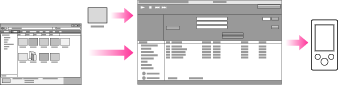 パソコンに取り込んだビデオ、写真、ポッドキャストのファイルを、本機に転送して再生します。ビデオは、録画したビデオからの取り込み、インターネットからのダウンロードなどで入手できます。ポッドキャストはインターネットからのダウンロードで入手できます。