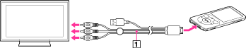 別売りの映像/音声出力ケーブル(WMC-NWV10)を使って、本機とテレビを接続する。