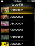 写真表示画面や、写真フォルダーや写真のリスト画面で写真を検索中でも、曲の再生は継続します。