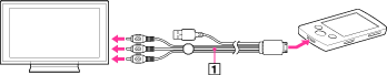 別売りの映像/音声出力ケーブル(WMC-NWV10)を使って、“ウォークマン”とテレビを接続する。