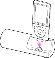 同梱のスピーカーのWM-PORTプラグを“ウォークマン”のWM-PORTジャックに奥までしっかり差し込んでください。