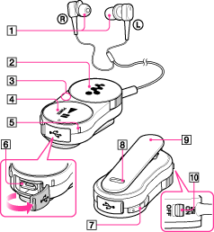 同梱のBluetoothヘッドホンの各部の名前(NW-S774BTのみ)