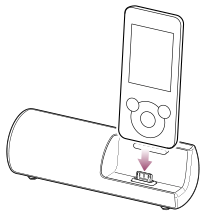 - 同梱スピーカーのWM-PORTプラグを“ウォークマン”のWM-PORTジャックに奥までしっかり差し込む。