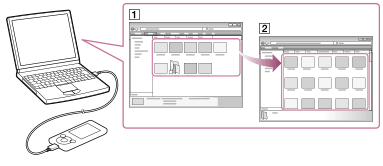 エクスプローラーまたはFinderを使って、ドラッグアンドドロップで“ウォークマン”にコンテンツを転送できます。
