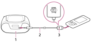 “ウォークマン”とオーディオ機器を、録音用ケーブル WMC-NWR1(別売)を使って接続すると、パソコンを介さずに“ウォークマン”で直接ラジカセなどから曲を録音できます。