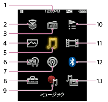 “ウォークマン”のホームメニューの項目一覧です。
