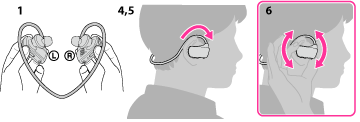 調整バンドを取り付けた“ウォークマン”を装着したら、調整バンドをおさまりの良い位置に調整してください。