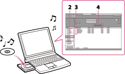 x-アプリでは、曲をインターネット音楽配信サービスからパソコンに取り込んだり、すでにパソコンに保存している曲(MP3、WMA(*1)、ATRAC、AAC(*1)など)をx-アプリで取り込んで管理できます。