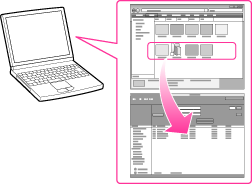 パソコンに取り込んだ曲やビデオ、写真をx-アプリに取り込みます。