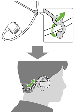 ウォークマン本体を水平、上向き、下向きに動かして、しっかり装着できる角度を探してください。