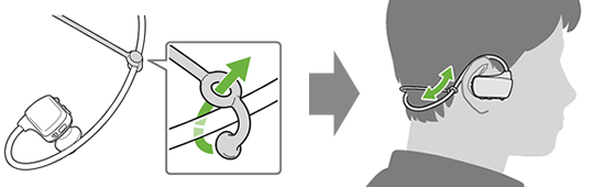イヤーピースが左右それぞれの耳の穴に、ぴったりと密着するように装着してください。