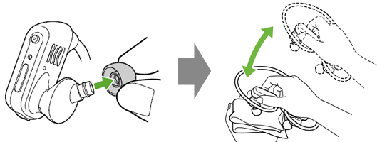 イヤーピースを回転させながら