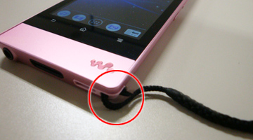 本体にストラップの取り付け口があります。別売りのストラップを取り付けていただくと、落下の予防につながります。