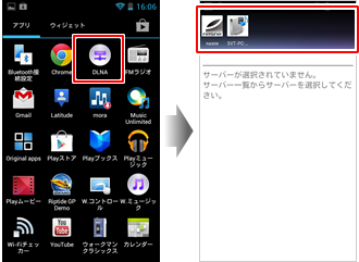 *お使いのウォークマンの型名や本体ソフトウェアのバージョンなどにより、「DLNA」アプリの表示内容が異なりますのでご了承ください。
